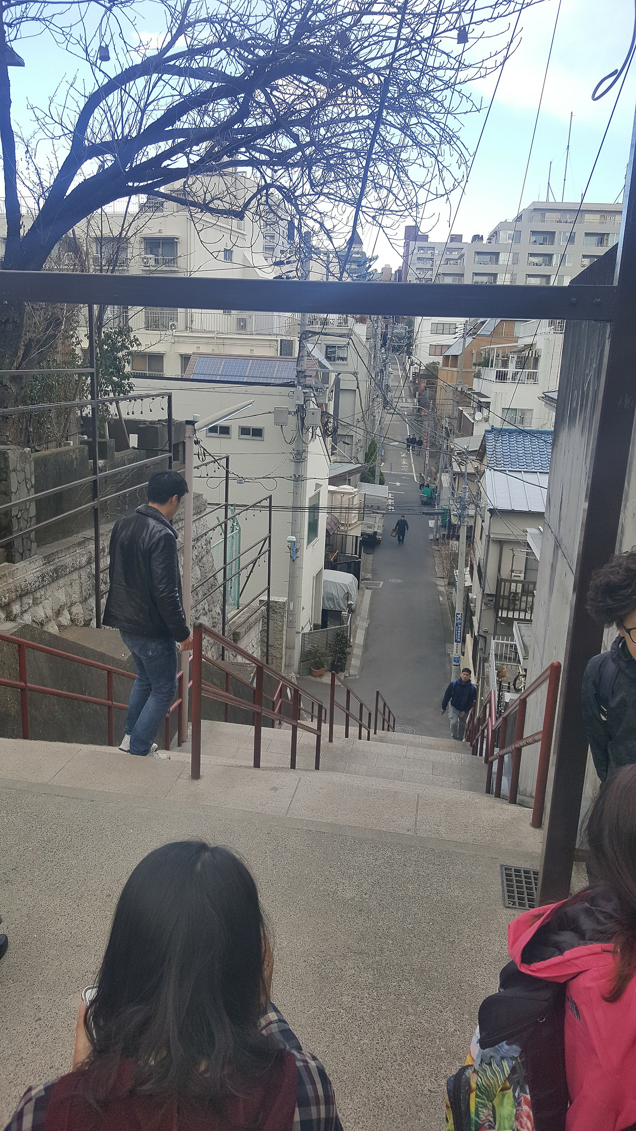 요츠야에 다녀왔다고 하면 친구들은 "거기는 왜?" 라거나, "전철 타면서 지나가 본 적 밖에 없어." 하는 반응이 대부분이었다. 요츠야에 간 이유는 "너의 이름은."의 엔딩 씬에 나오는 그 유명한 계단을 보기 위해서였다. 마침 아사쿠사를 가는 길목에 있고 시간 여유도 있었기 때문에 가볍게 들러 보기로 했다. 요츠야 산초메 역에서 "너의 이름은" 성지가 있는 스가 신사에 도착하는 데는 10분 정도 걸렸다. 신사 정문에 도착한 후 영화의 성지인 그 계단이 어디에 있나 찾으려고 10초 정도 두리번거렸는데, 이윽고 찾으려 애쓸 필요가 없다는 사실을 깨달았다. 신사 한편에서 20명 정도 되는 인파를 발견했기 때문이다. 영화가 나온 지 한참 되었음에도 성지순례를 온 관광객이 많았다. 세 명 중 두 명은 중국인, 한 명은 한국인인 것 같았다. 사진을 찍으려고 선 줄이 너무 길어서 지나치듯 사진을 몇 장 찍고 아사쿠사로 가기 위해 요츠야 역을 향해 갔다.