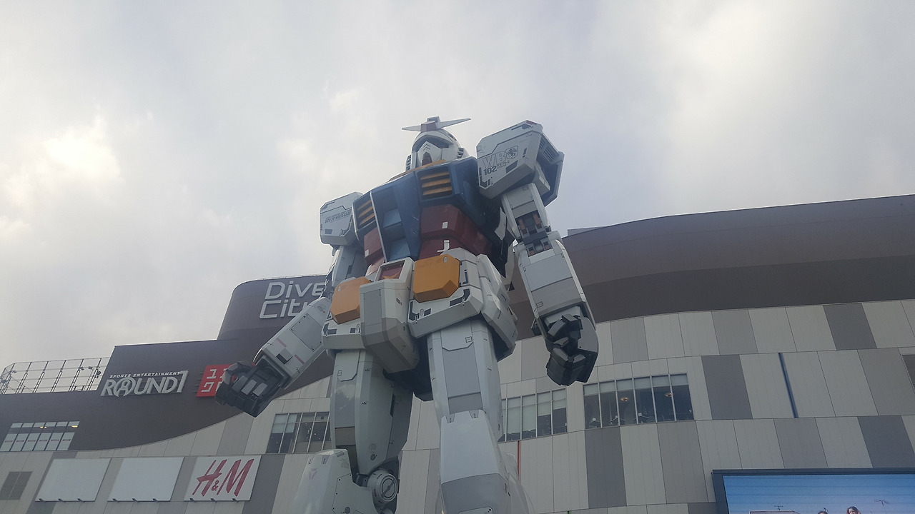 다이바 시티 앞에는 실제 크기의 건담이 서 있었다. 여기에서도 아사쿠사처럼 관광객 무리와 섞이게 되었다. 도쿄 관광의 필수 코스 중 하나인 걸까? 적어도 건담 팬이라면 꼭 들를 만한 장소 같았다.