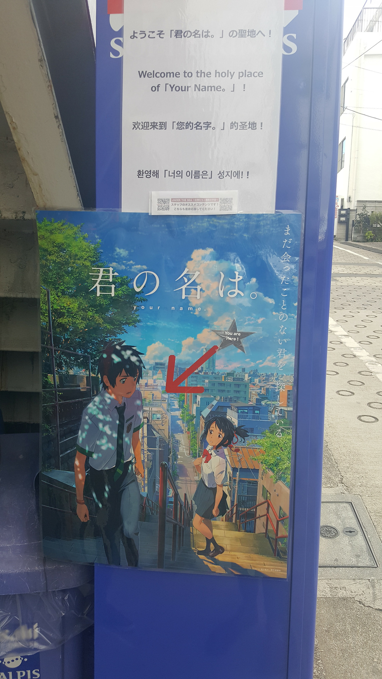 가는 길에 자판기에서 "너의 이름은." 포스터를 발견했다. 일본 사람들은 콘텐츠의 매력을 어떻게 극대화시킬 수 있는지, 그것을 어떻게 활용해야 돈을 버는지 잘 알고 있는 것 같다는 생각을 하며, 자판기에서 100엔짜리 음료수 하나를 뽑아 마셨다. 아침부터 도쿄는 내 돈을 능숙하게 가져갔다.
