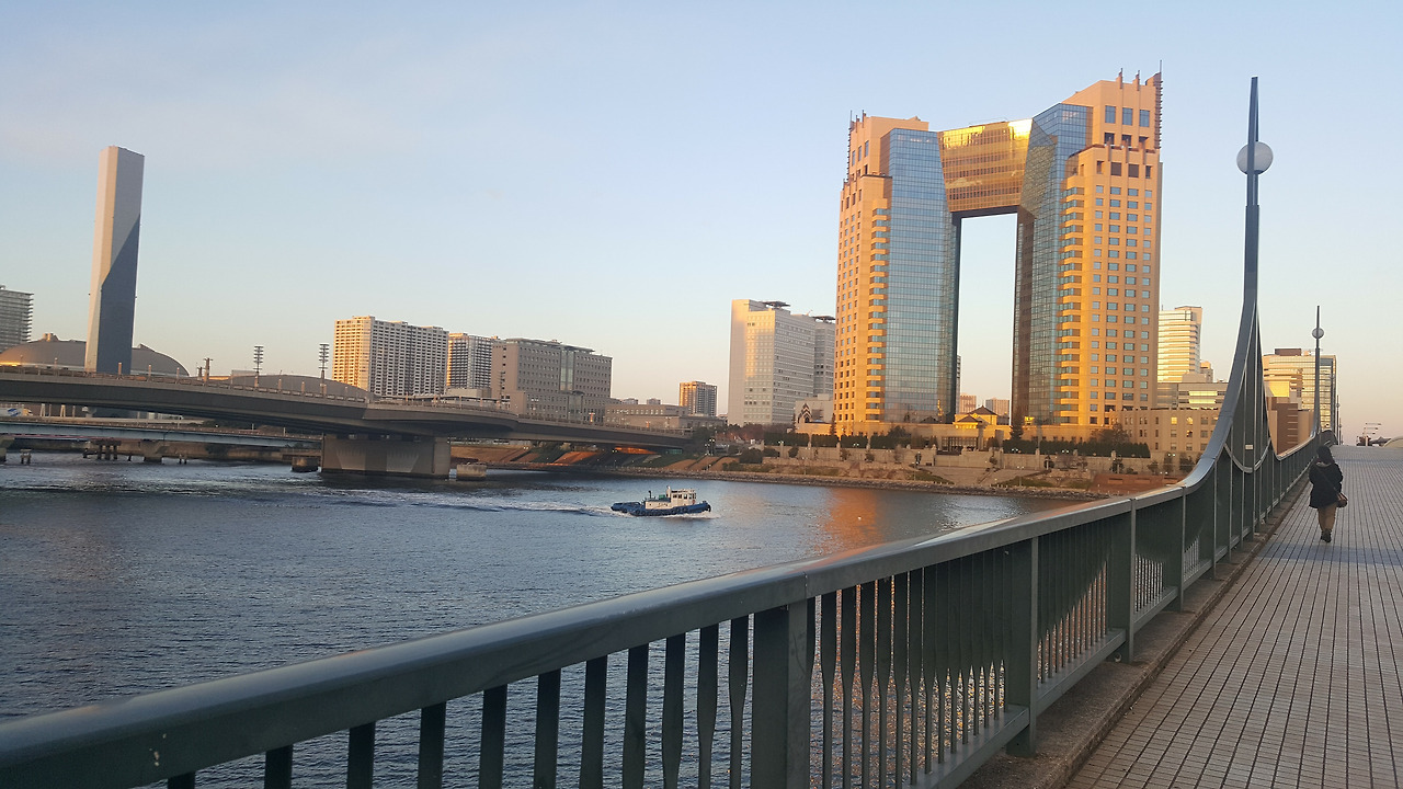구글 지도에만 의존하며, 길을 건너서 웬 어두운 공원을 뚫고 나가니, 기가 막힌 포토존이 있었다. 친구와 서로 사진을 몇 장 찍고, 풍경을 바라보며 10분 정도 서 있었다. 하루 종일 왁자지껄한 관광객들 틈에 있었는데, 이 공간만큼은 나와 친구 말고는 아무도 없었다. 약간 세기말적인 느낌마저 풍겨왔달까. 그런 적막은 자유 여행만이 가질 수 있는 것이겠지 하며, 자유 여행의 장점이 자꾸 생각났다. 비록 추위는 매서웠고 발바닥도 아팠지만, 4박 5일 도쿄 여행 중 좋았던 순간을 가려내면 열 손가락에 꼽을 만한 그런 순간이었다.