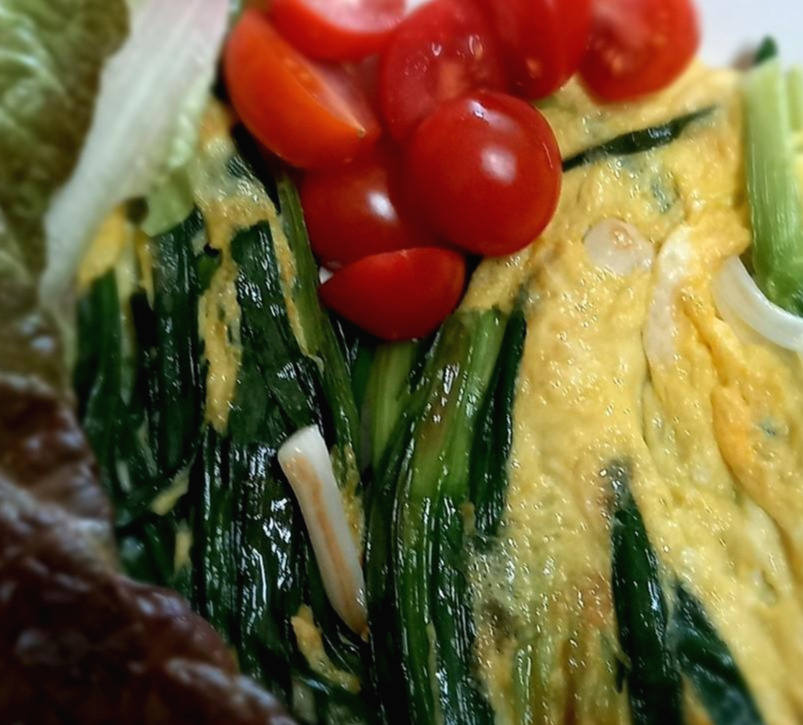 처음에는 올리브유에 생파를 버무릴까 하다가 파의 향이 강할 것 같아 진로를 바꿨다. 팬에 올리브유를 두르고 파를 살짝 구운 다음 달걀 물을 올려 오믈렛 스타일로 만들기로 했다. 모양은 그런대로 성공이다. 그런데 파를 기름에 구운 이상 날것이었을 때 전해지는 활력은 사라지고 숨이 죽은 모습은 어딘지 어색하고 맘에 안 들었다.