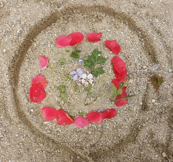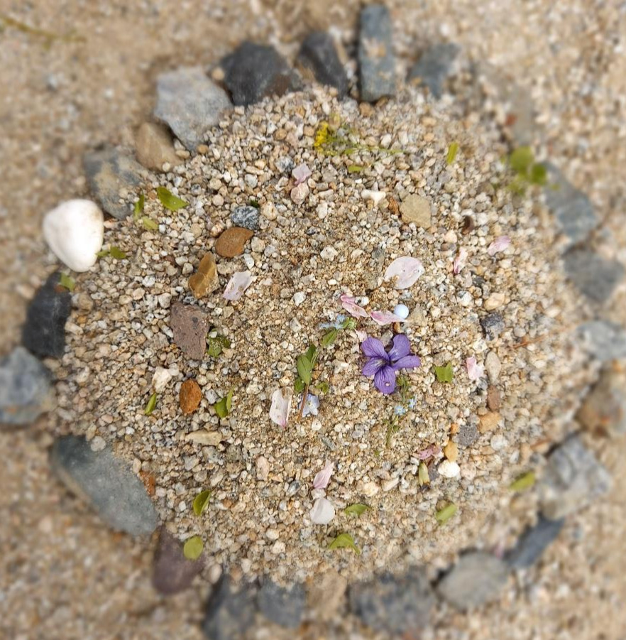 케이크다. 봄꽃과 잡초, 나뭇잎으로 장식했다. 촉촉한 카스텔라를 대신한 건 놀이터 바닥을 이루는 모래다. 어느 날은 제비꽃이 중앙에 자리 잡았다. 개나리와 동백꽃도 등장한다. 아이들이 창조해 낸 그건 먹을 수 없기에 더 먹고만 싶어 지는 세상에서 유일한 케이크였다.
