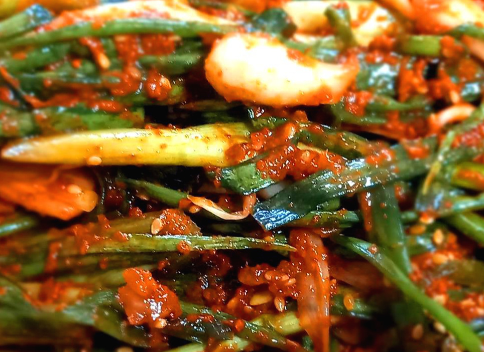 우리 집에는 이외에도 세 종류의 김치가 있다. 쪽파, 부추, 열무다. 농사지은 것을 기꺼이 나누는 이들의 넉넉한 마음이 함께 하기에 특별하다. 부추부터 얘기해야겠다. 완도 바닷바람을 맞고 자랐다. 월급쟁이에서 시골 농사꾼으로 변신한 위층 언니 부부가 일군 것이다. 언제나 그렇듯이 현관문을 쿵쿵쿵 두드리는 소리다. 문을 열어 보니 언니가 바쁜 걸음에 파란 비닐에 담기 부추를 주고 정신없이 간다.