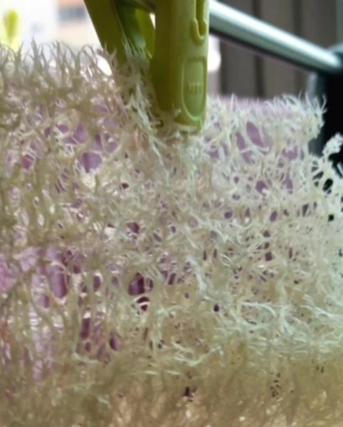초록색 수세미에서 씨앗과 끈적끈적한 속살을 씻어내어 말린 후에야 제 모습을 갖춘다. 적당한 틈이 있어 물이 잘 빠지고 요즘 같은 강렬한 햇빛 아래 선 마른풀을 뉘어 논 모습이다. 물이 빠져나가 바짝 마른 상태는 단단하고 억세다. 그러다 조금이라도 물을 갖다 대면 다시 살아난다. 기름기가 있는 것도 깨끗하게 닦이고 조물조물해주면 금세 말끔하다.