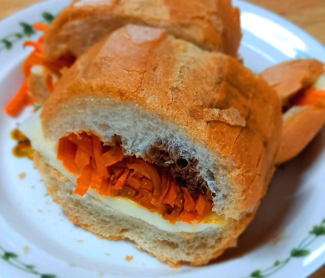 집으로 돌아오니 11시 반이다. 점심은 바게트가 주인공인 내 맘대로 샌드위치다. 냉장고 문을 열어보니 당근이 들어온다. 당근을 채 썰어 살짝 올리브유에 볶았다. 갓 구워낸 바게트 사이에 이것을 넣고 치즈를 올리고, 발사믹 소스를 살짝 뿌려주었다. 얼른 한입 베어 물었다. 입에서 나도 모르게 미소가 나온다. 고민하던 샌드위치는 성공이었다. 당근의 아삭 거림과 치즈의 고소함, 가장 훌륭한 건 바게트의 살아있는 겉은 바삭하고 속은 촉촉한 식감이었다.