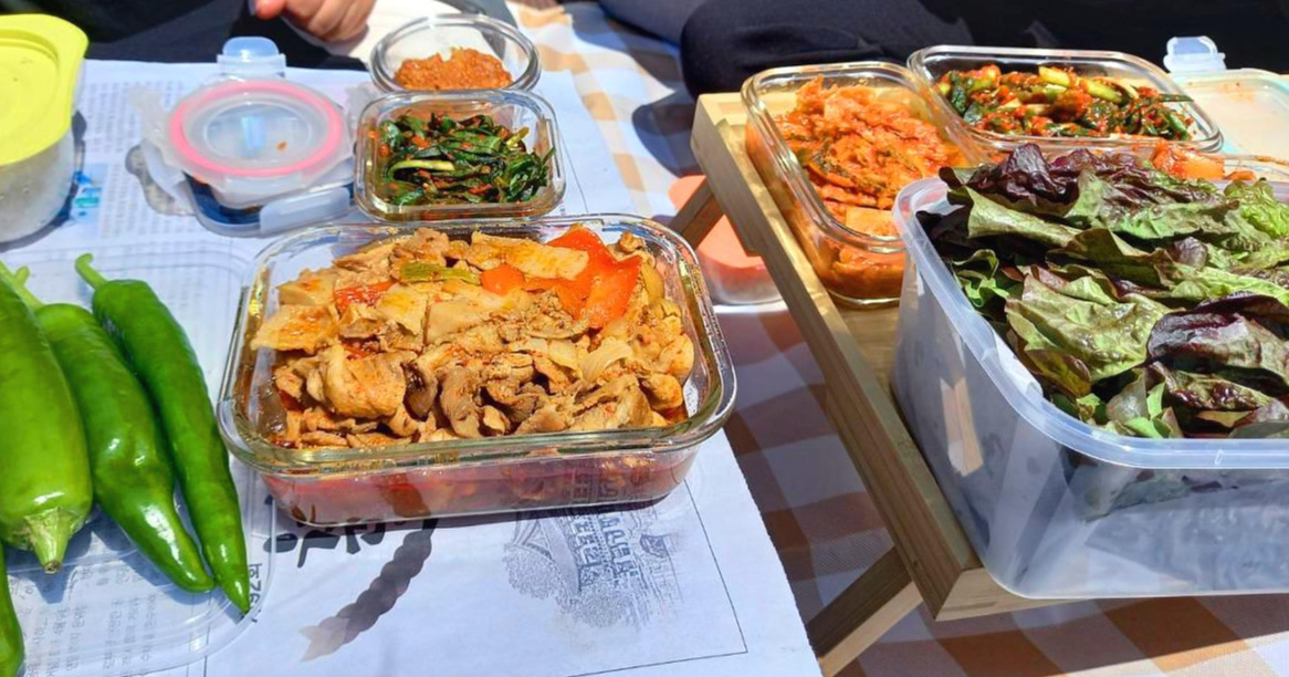 맛있는 음식은 이날의 하이라이트. 누군가는 먹기 위해서 어디를 떠난다고 했고, 다른 이는 만남이 주는 선물 같은 것이기에 사람들과 함께 한다고 했다. 세 명이 나선 나들이였다. 쌈밥을 먹기로 한 우리는 각자가 조금씩 준비하기로 했다. 난 돼지고기 주물럭을 맡았다. 아이들이 학교에 가자마자 불 앞에 섰다. 매일 하는 밥이어도 가족이 아닌 다른 사람들에게 선보이는 건 조심스럽다. 몇 년을 만나 제법 친해진 이들이었지만 혹여나 맛이 없으면 어쩌지 하는 불안감도 스쳤다. 평소 하던 대로 고기에 마늘, 맛술을 넣고 먼저 볶았다. 그다음 파프리카와 양파 대파, 버섯을 더했다. 마지막으로 간장과 매실청, 고춧가루를 넣고 만든 양념을 붓고는 국물이 어느 정도 줄어들 때까지 조렸다. 통에 담기 전에 하나를 들어 맛을 보았다.