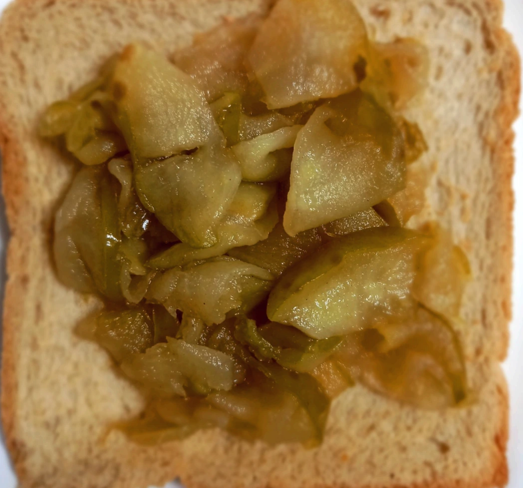 사과 조림을 올린 샌드위치로 점심을 대신했다. 사과조림의 열기가 사라질 즈음 사각 작은 유리그릇에 담고는 냉장고로 직행했다. 냉장고에서 꺼낸 사과가 다시 다른 모습으로 냉장고에서 얼마 동안 머문다.