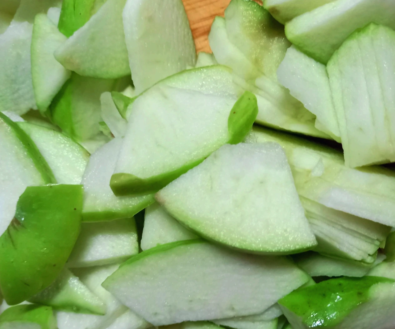 냉장고 문을 닫았다가 바로 열었다. 사과 다섯 개가 있었는데 우선 두 개를 꺼냈다. 별생각 없이 씻었다. 씨와 딱딱한 부분을 칼로 도려내고는 나박김치 만들 때 무를 써는 것처럼 얇게 저몄다. 사과 두 개였는데 썰어놓으니 작은 산을 이뤘다.
