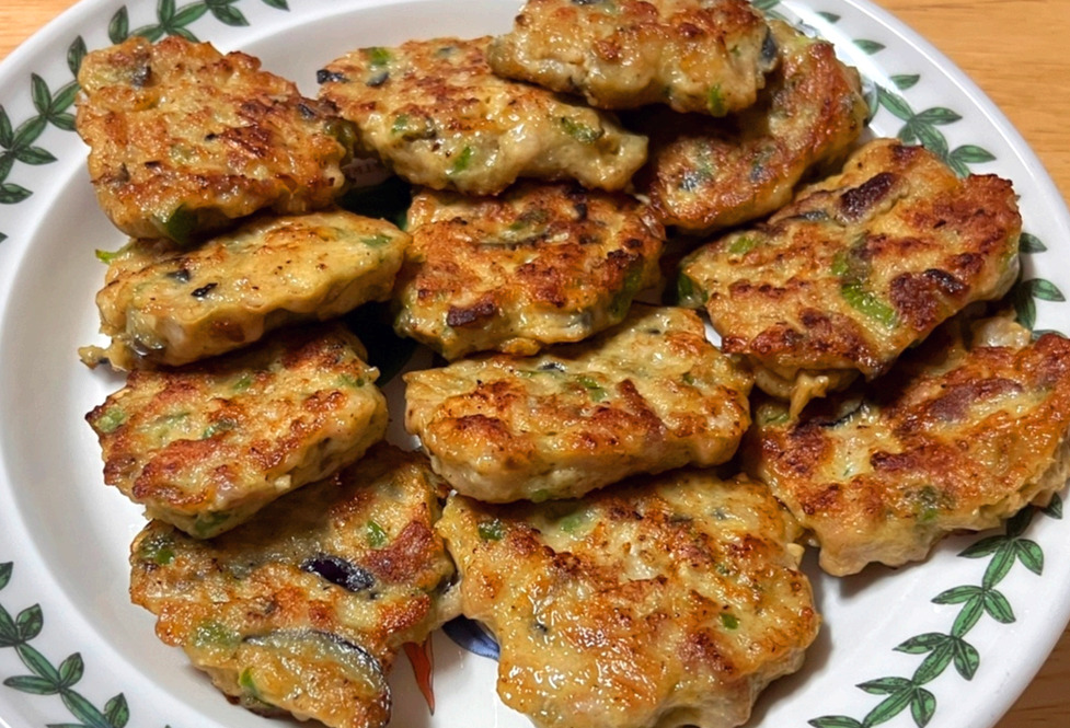 종종 동그랑땡을 만들어 먹는다. 채소를 골고루 먹게 하려는 마음과 아이들이 선호하는 것 사이에 절충될 수 있는 지점이 있기 때문이다. 집에 있는 가지와 풋고추 대파, 마늘까지 넣고는 동그랑땡을 만들었다.