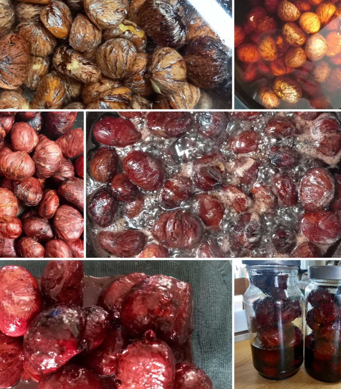 잠자기 전 베이킹소다를 넣고 물에 담갔다. 밤의 떫은맛을 없애기 위한 첫 단계다. 꼬박 12시간이 지난 후, 다음날 다시 베이킹소다를 넣고 밤을 끓여주고 씻기를 세 번 반복했다. 진한 보라와 갈색의 중간색을 띠는 물이 냄비에 가득하다. 밤 속살을 감싸는 털과 보늬에서 나온 것이었다. 혹시나 밤의 속살이 터질까 정성스럽게 다뤘다. 그래도 역시나 몇 개는 벌써 흐물거리더니 탈락이다.