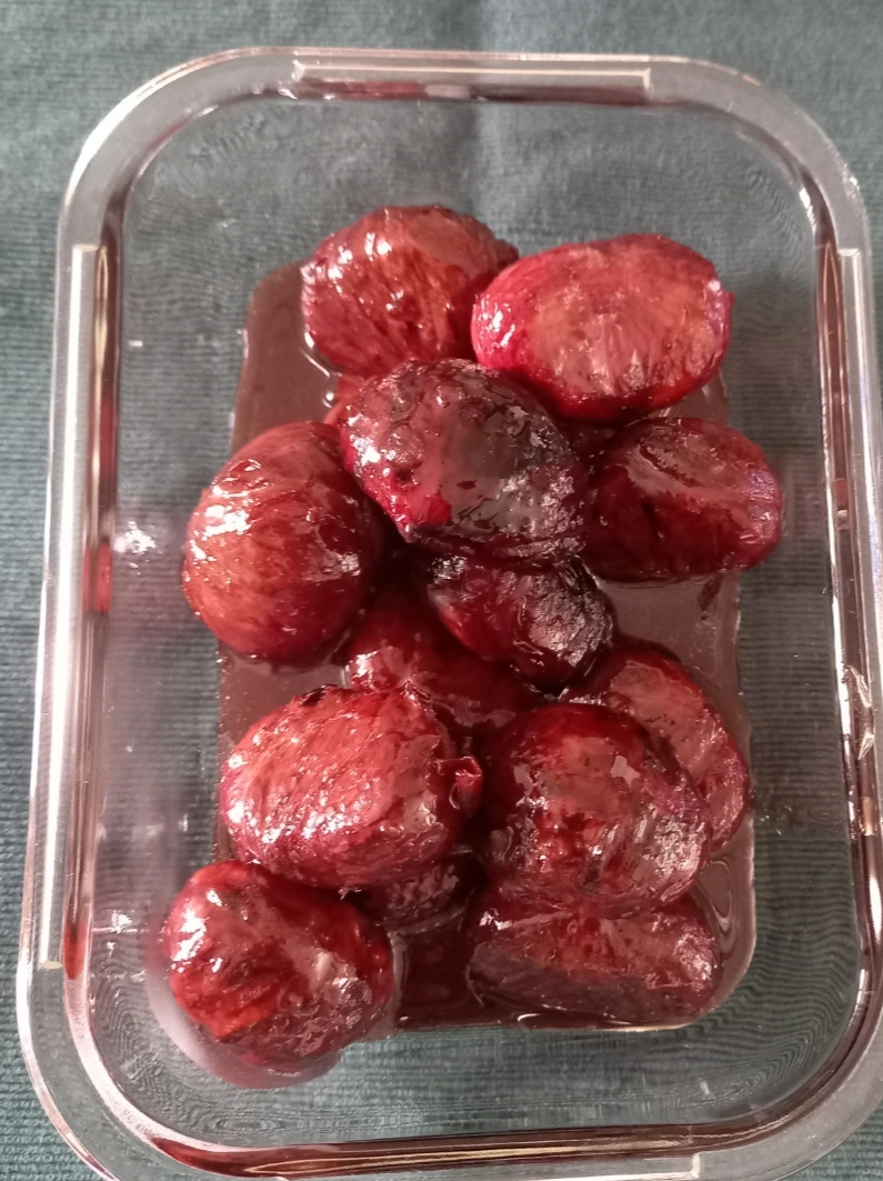 밤의 겉면에 드리운 진한 갈색 심지 같을 것을 이쑤시개로 몇 개 떼어내었다. 이제 마지막 고지가 가까워졌다. 밤의 무게를 알기 위해 저울에 올렸다. 설탕의 양을 적당히 하기 위한 과정이다. 눈짐작으로 해도 괜찮겠지만 혹시나 하는 마음에 인터넷에 올라온 레시피를 따르기로 했다. 밤 무게의 60퍼센트 정도가 적당하다고 했다. 큰 냄비에 물과 설탕을 놓고 졸이는 마지막 과정이다. 이때 많이 저어주면 밤이 으스러질 수 있어 가능한 한 그대로 두었다. 어느 정도 졸았으면 와인과 간장 한 숟가락을 더하고 나면 알밤 색은 진해지고 빛나기 시작했다.