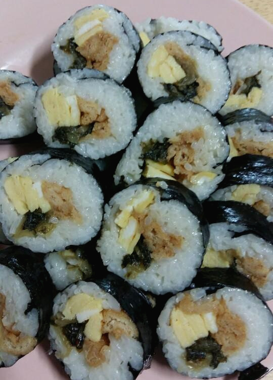 “아니 내가 친구랑 만들었어. 김밥이 어렵더라고. 생각보다 잘 안되더라고.”
