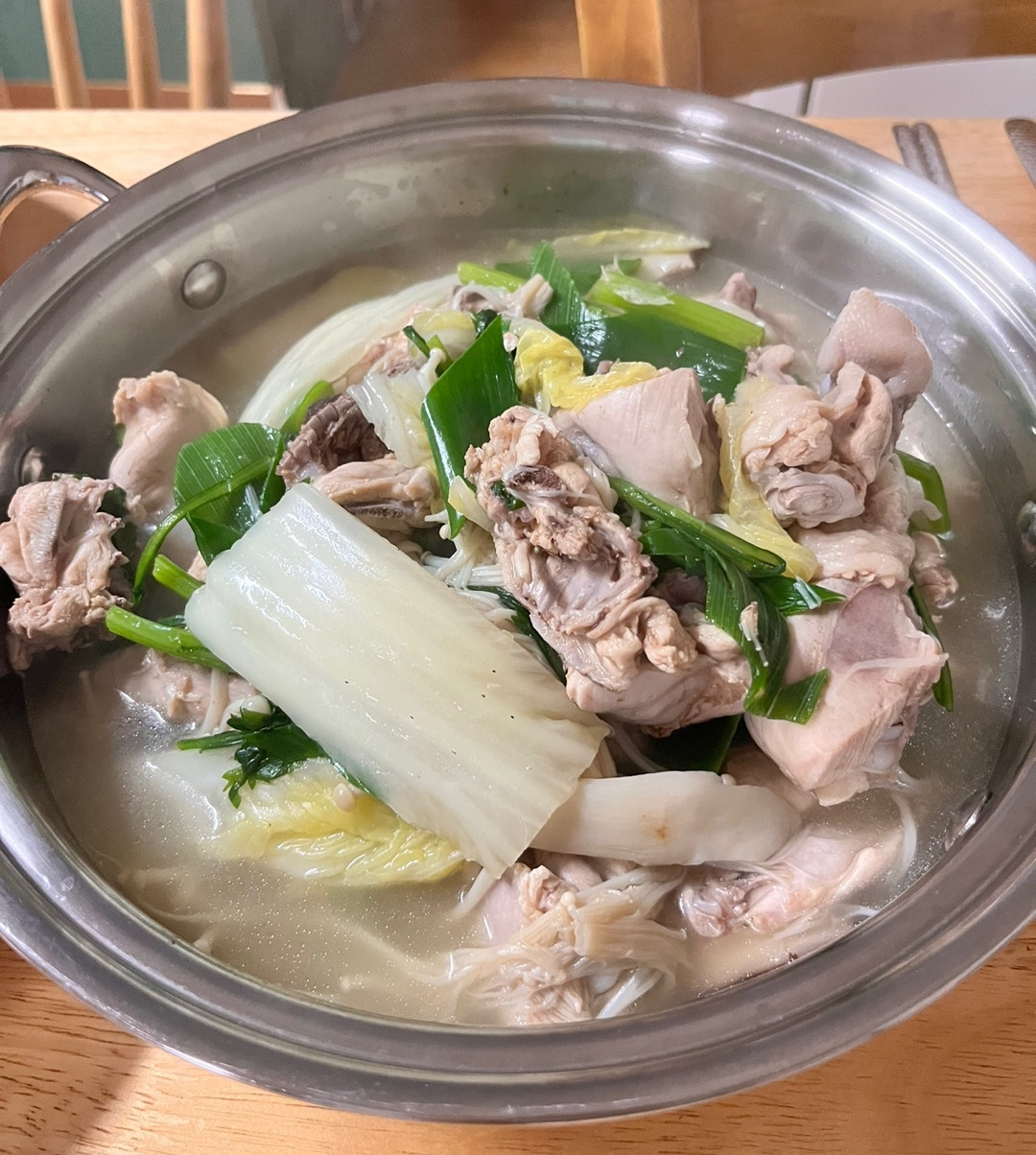 고기 손질이 마무리되면 물을 적당히 부은 냄비에 대파 뿌리와 대파, 무, 대추, 말린 생강, 크게 썬 무와 함께 닭을 삶았다. 냄비에 거품이 생기면 국자로 걷어줘야 말끔한 국물을 만날 수 있다. 그렇게 한 40분 정도를 끓이고 나선 다른 재료가 등장할 차례다.