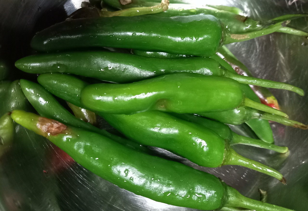 초록의 색도 한몫한다. 가을이 올 무렵이면 시골집 길가에 고추를 널어놓고 말리는 모습이 멋지다 여긴다. 그럼에도 고추는 초록이어야 제 옷을 입은 것 같다. 고춧가루가 사라진 밥상을 상상하긴 어렵지만 진한 풋고추는 외면하기 힘들다.