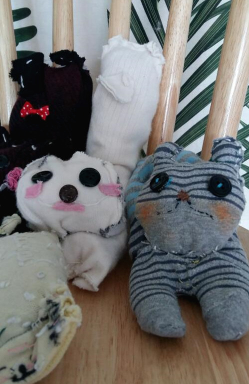 “집에서 엄마가 고양이랑 안 된다고 했잖아. 그래서 양말인형 만들기 시작한 거야?”
