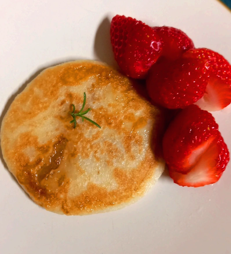 호떡 10장을 만들었다. 접시 가득 호떡 중에서 하나를 꺼냈다. 딸기 몇 알과 함께 두었다. 오후에 잠깐 수고하니 원하던 그림이 만들어졌다. 초록이 없어서 아쉬웠다. 화분에 있는 로즈메리 잎을 하나 따서는 호떡 위에 올렸다.