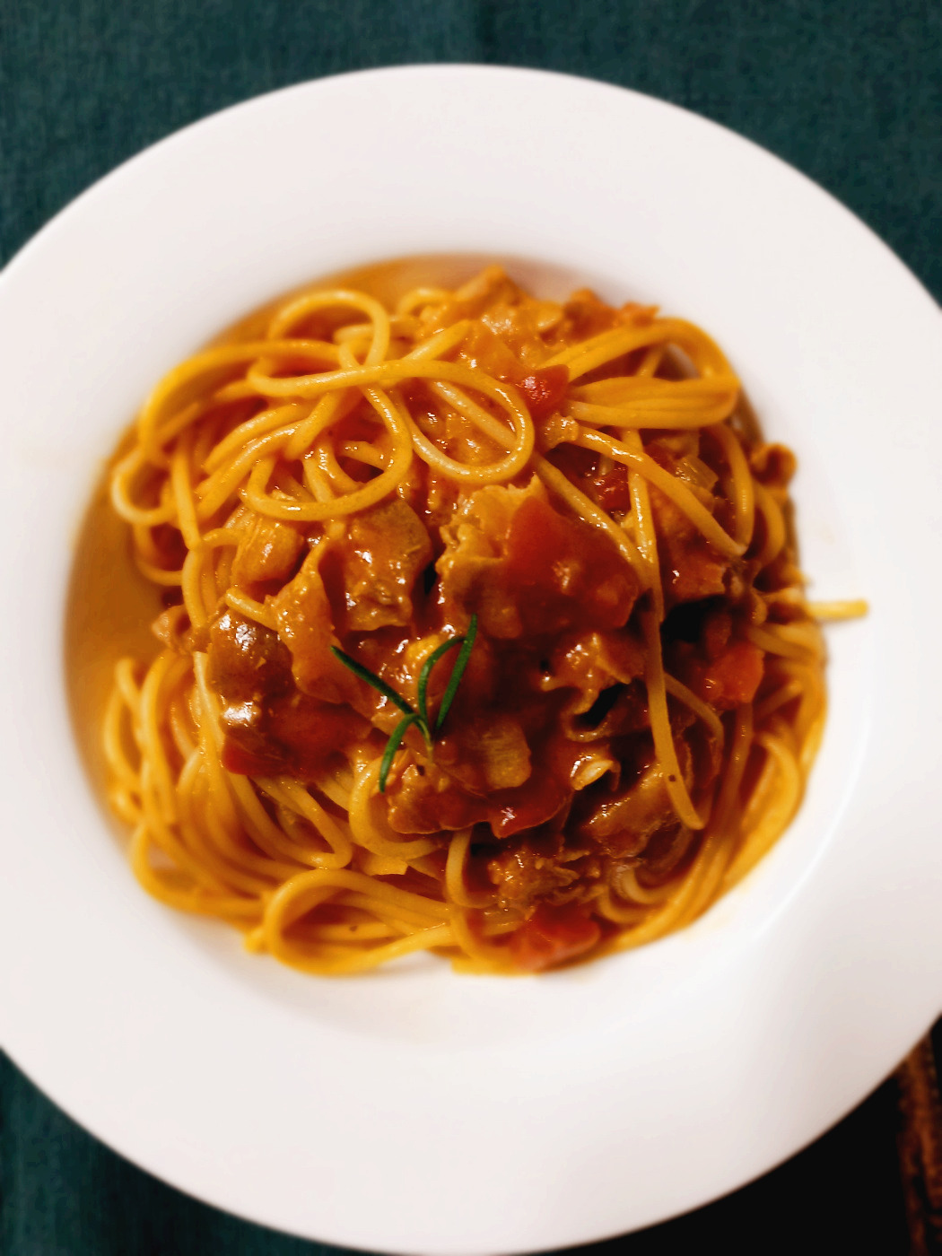 호불호가 갈리지 않는 시판 소소의 위엄 때문인지 아이는 한입 먹고는 엄지 척이다. 대패삼겹살의 적당한 기름이 토마토의 톡 쏘는 달콤 시큼함과 어울렸다. 맛이 궁금해서 아이의 포크를 빼서 들어 면 몇 가닥을 입에 넣었다. 예상보다 부드러우면서도 고기의 느끼함이 없다. 보통의 토마토 스파게티지만 깊은 끝맛에 끌린다.