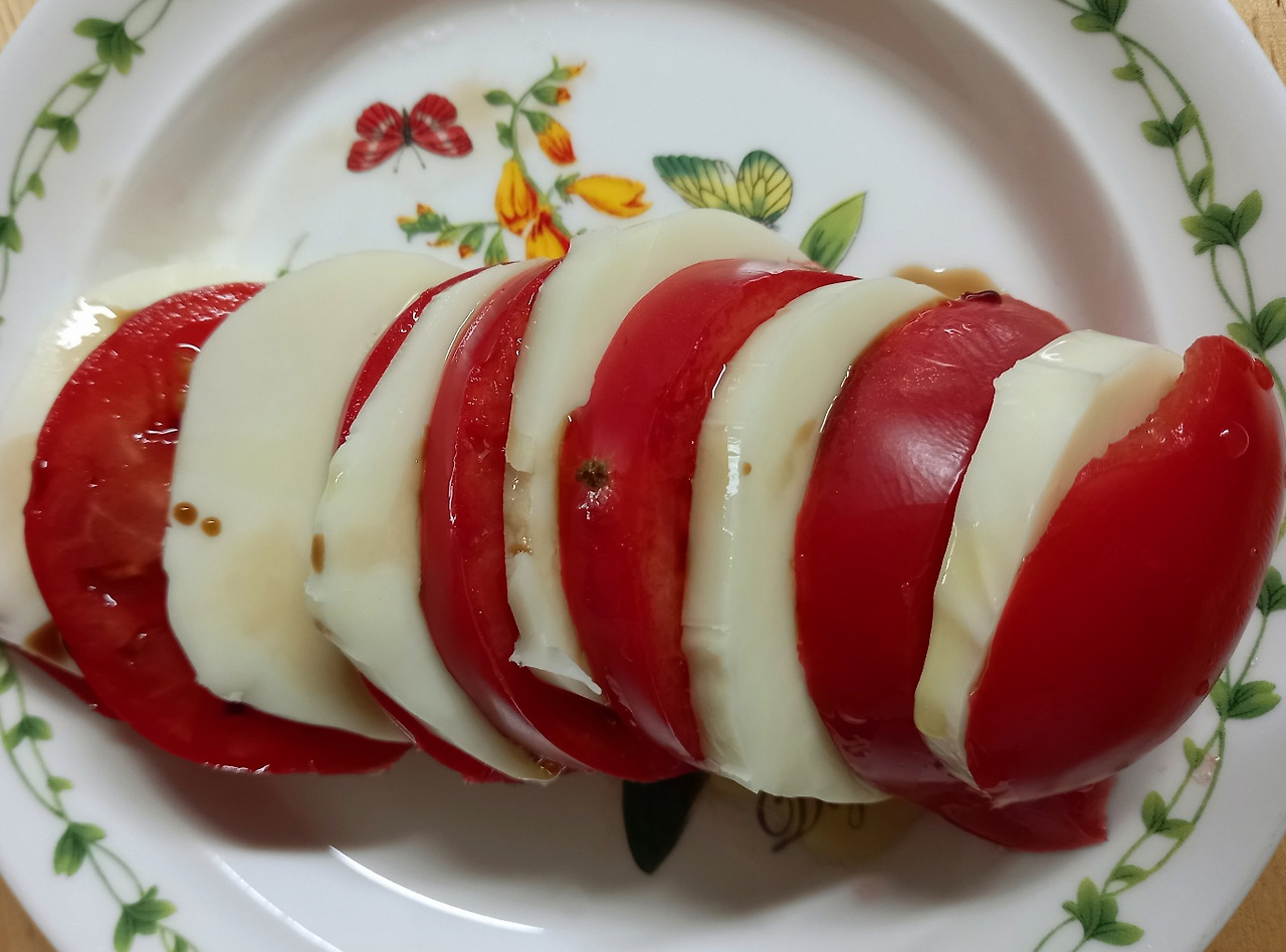 아이의 한 마디에 내 생각도 그곳에 머물렀다. 며칠 전 사둔 생치즈도 있으니 손만 몇 번 움직이면 가능하다. 토마토 하나와 치즈를 대충 썰어서 접시에 놓았다.