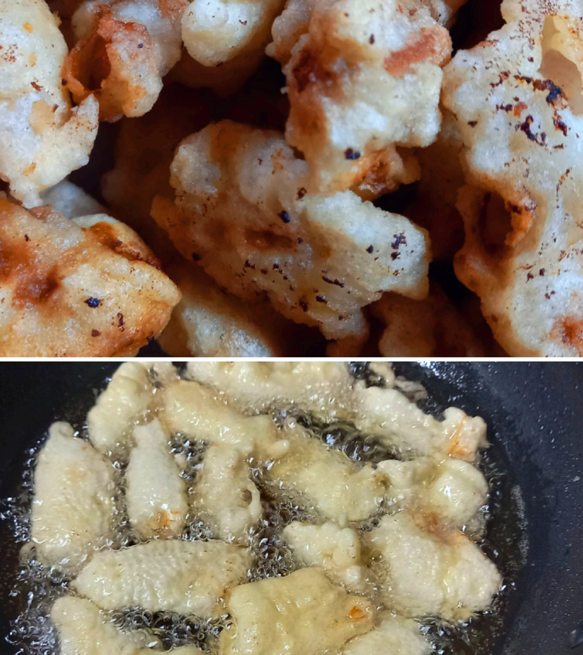 찹쌀가루와 밀가루를 1대 3 비율로 섞은 다음 반죽을 만들었다. 고기에도 반죽이 잘 붙도록 밀가루 옷을 살짝 입힌 다음 튀기기 시작했다. 온종일 여름 더위를 예고하는지 후텁지근한 날이었다.