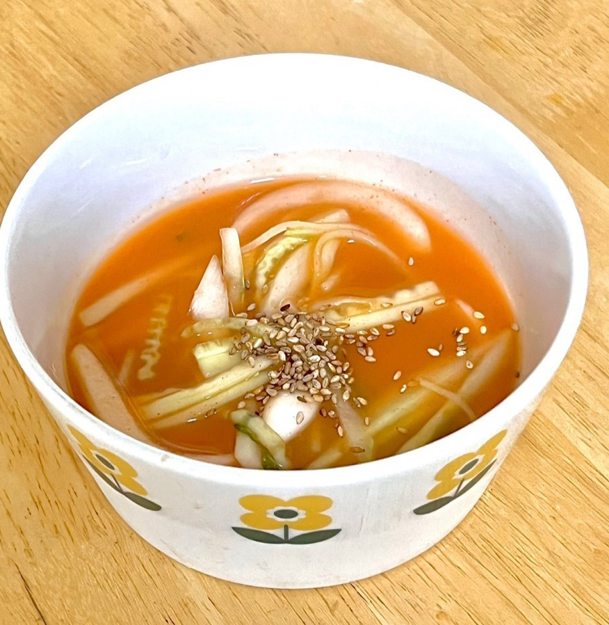 오이와 양파, 오이고추를 채 썰었다. 그 옛날 엄마의 방법을 그대로 따라 했다. 며칠 전 만들어둔 쌈장을 넣고 식초만 더했다. 차가운 물을 적당히 부어주고는 잘 저었다. 깨를 조금 뿌리니 끝이다.