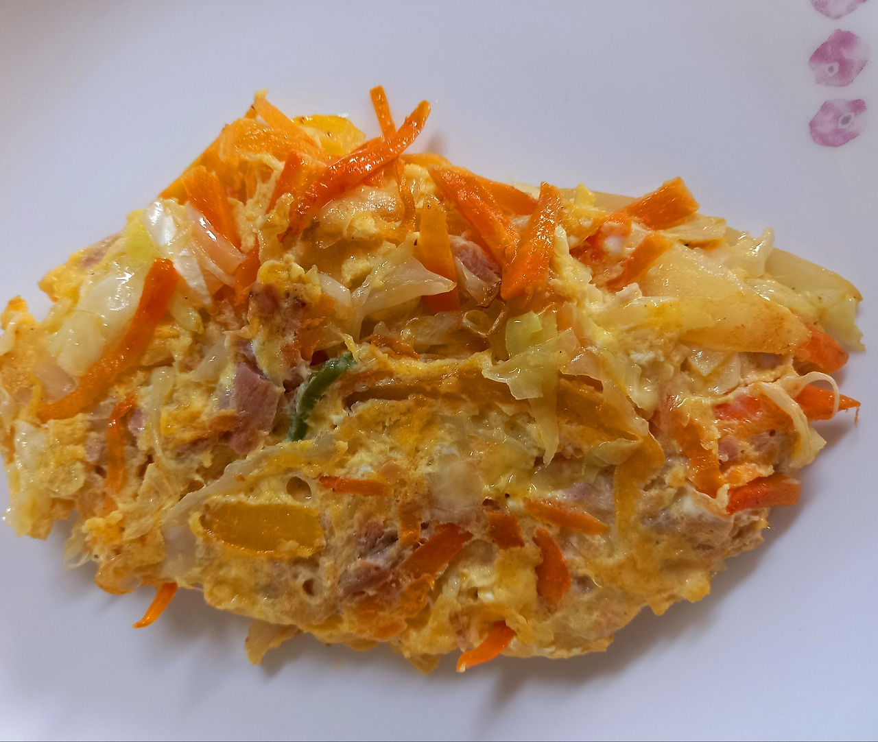 장바구니에는 있는 불과 몇 분 전에 산 참치통조림이 생각났다. 이것과 채소만 있으면 가능한 음식이다. 집에 있는 양배추와 양파, 파프리카, 청양고추를 썰어 둔다. 팬에 식용유를 두르고 준비해 둔 채소에 허브 소금을 뿌려서 볶다가 한숨 죽으면 참치 넣은 달걀 물을 올리고 주걱으로 적당히 저어가며 익히면 끝이다.
