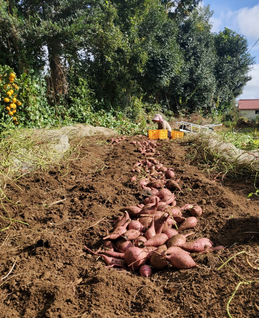 무릎이 안 좋아 앉고 일어서기도 힘들어하는 엄마가 땀 흘려 지은 농사의 결실이다. 어느 일요일에 언니가 아침부터 사진을 보내왔다. 엄마가 과수원 한편에 있는 밭에서 고구마를 캐는 모습이 담겼다.