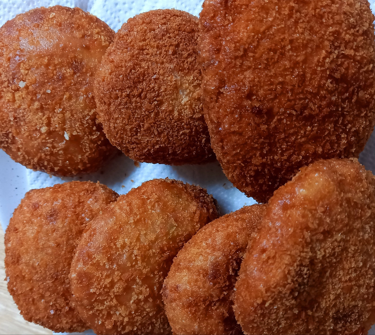 뜨거운 기름에 들어가기 전 차가운 물에 빵을 담근 다음 빵가루를 묻혀내어 튀겼다. 먼저 하나를 넣었더니 기름이 물거품을 이루듯 퍼져나갔다. 쏴아 하는 기름 보글거리는 소리가 정겹다. 그렇게 고로케 8개를 만들었다.