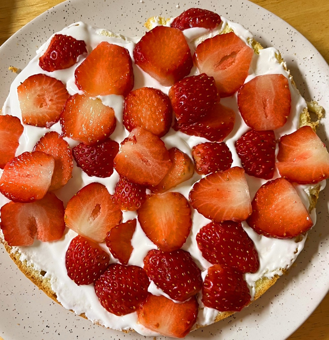 이때부터 케이크를 향한 설렘이 시작되었다. 일요일 저녁 무렵에 휘핑크림을 열심히 저어 생크림으로 만들었다. 빵 위를 장식할 딸기도 씻었다. 이맘때 하얀 생크림과 딸기의 조합은 눈이 부실만큼 환상적이다. 하얀 눈을 연상케 하는 크림에 빛나는 붉은 딸기는 다른 게 필요 없는 짝꿍이다.