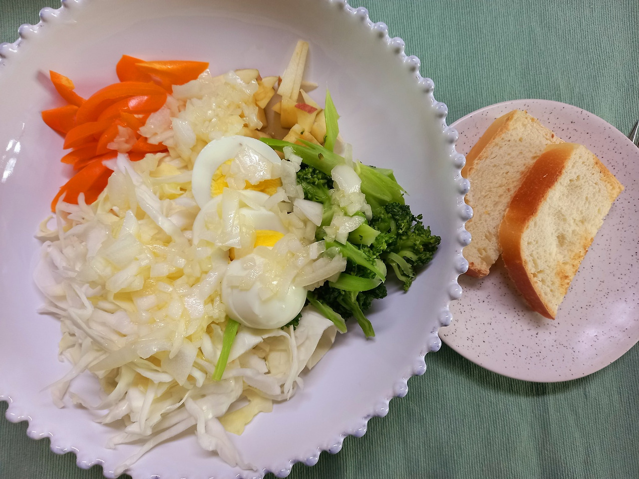 빵과 샐러드가 전부인 내 점심은 그저 보통의 한때였다. 정말 좋았다거나 별로였다고 말하기 어려웠다. 솔직히 말하면 이것을 먹고 기분이 좋아지고 싶었지만 그러지는 않았다. 그래도 다행인 건 작지만 새로이 만들어서 식탁에 올렸다는 것.