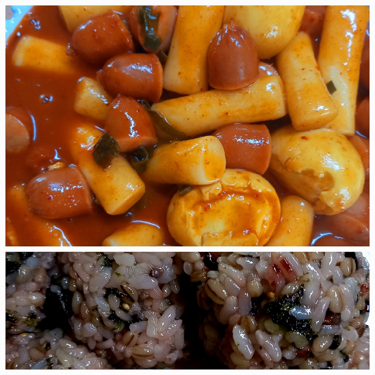 국물에 물이 오르니 밥과도 제법 잘 어울렸다. 김자반을 넣어 만든 주먹밥을 곁들였다. 토요일 점심, 휴일이기에 먹고 싶은 음식을 맘껏 먹을 수 있도록 양도 넉넉하게 준비했다. 잡곡밥으로 만든 그것을 국물에 찍어 먹으니 그것 또한 신세계다. 작은 밥알에 빨간 국물이 순식간에 스며들었다. 솔직히 떡볶이보다 이것이 더 특별하게 느껴질 정도였다.