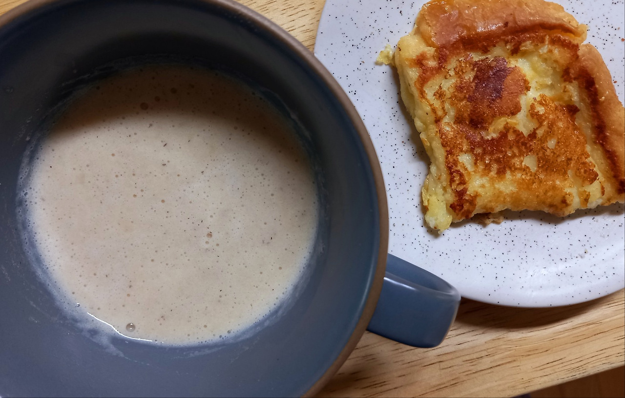 전날 아이들과 카페를 다녀왔다. 디저트로 빵 종류를 먹어서인지 토스트가 그리 당기지 않는다. 아이가 옆에서 프렌치토스트의 진수를 맛보라는 한마디에 반 조각을 수프와 먹었다.