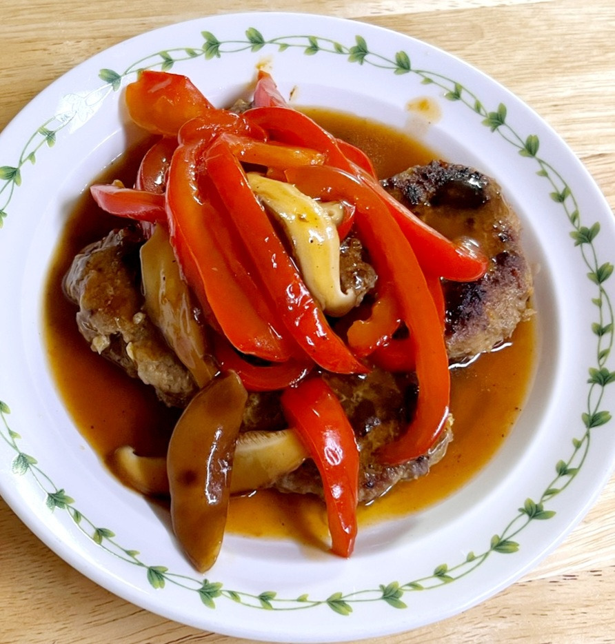 편하게 하기로 해서 시판 돈가스 소스를 활용했다. 버터를 뜨거운 팬에 넣고 집에 있는 채소를 볶다가 물을 적당량 붓고 돈가스 소스를 더한다. 여기에 양조간장 반 숟가락과 설탕을 조금 넣고 마지막에 녹말 물을 풀어주면 걸쭉한 소스 완성이다.