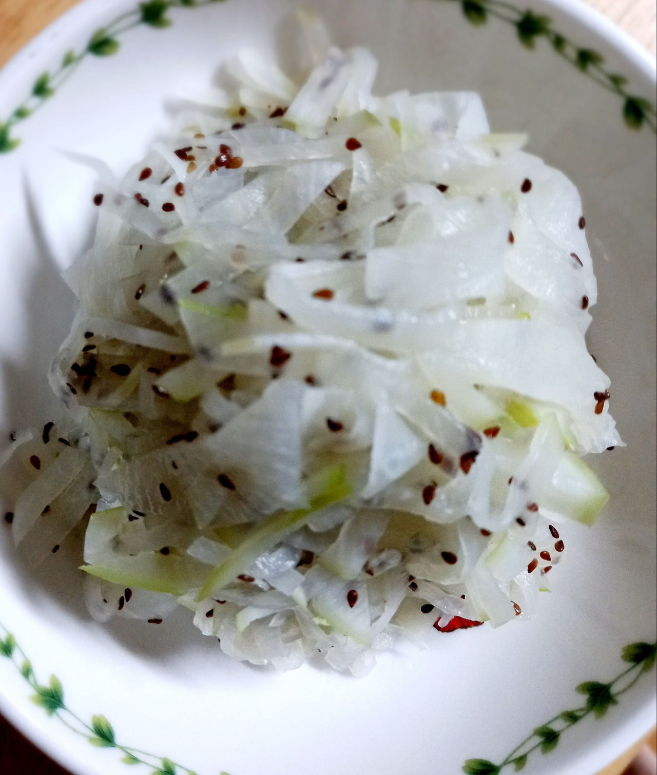 맛은 달콤하면서 고소하다. 자꾸 먹어도 물리지 않는다. 원래 무라는 녀석이 이리도 맛난 것이었을까 하는 생각이 들만큼이다. 무 반 개를 했는데도 숨이 죽으니 접시 하나에 가득할 뿐이다.