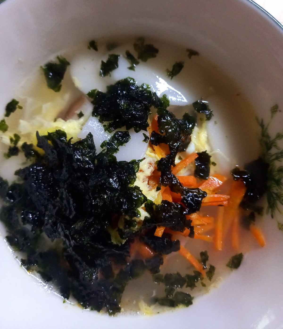 좀 더 맛있게 먹고 싶다면 식탁 위에 나뒹구는 조미김을 꺼내어 깨끗한 비닐에 넣고 부숴서 넣는다. 김에 있는 조미료는 떡국에 순식간에 스며들어 은은한 바다향과 더불어 전과는 분명히 다른 맛이다.