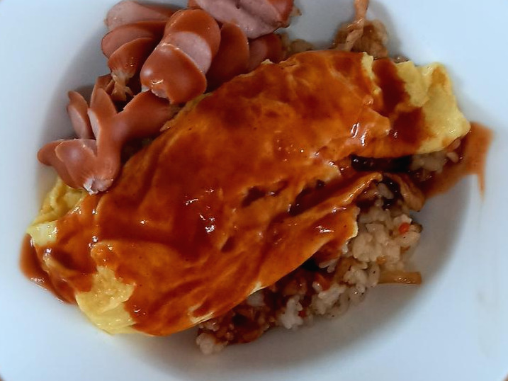 몇 분이 지났을 뿐인데 순서대로 만들어졌다. 파스타 접시에 밥을 담고 계란을 올리고 소스를 적당히 뿌렸다. 아이들이 좋아하는 비엔나소시지도 대처서 담았다. 배달 음식으로 그냥 넘어가려 했지만 일은 원하는 대로 안 되었고 부엌에서 오물조물했을 뿐인데 그래도 괜찮은 음식이 완성됐다.