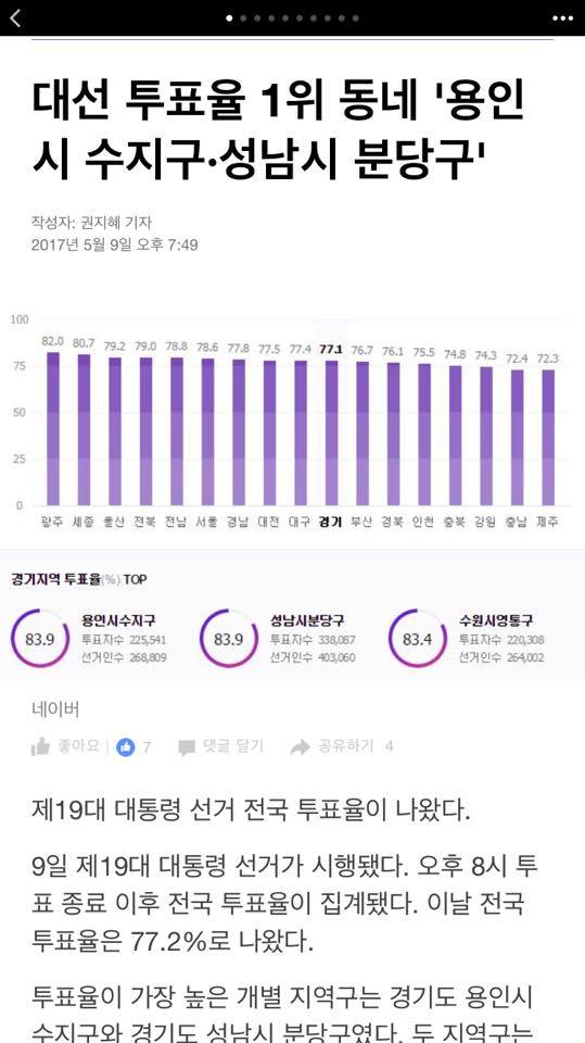 수지, 분당, 영통이 대선 투표율 최고를 기록했다
