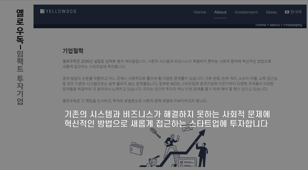우리나라도 옐로우독과 같은 임팩트 투자회사가 활성화되어 있습니다.