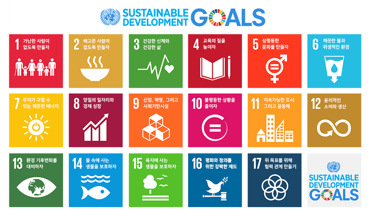 상상플래닛은 스타트업의 초기 입주와 관련해서 다양한 지원을 해주는데요 입주를 희망하는 스타트업에게 묻는 필수적인 질문이 유엔의 ‘SDGs’ 목표 중 어느 목표를 지향하는가 하고 합니다. 유엔의 ‘SDGs’ 들어보셨죠? 제가 바로 전 강의에서 언급했는데요 바로 이것입니다.