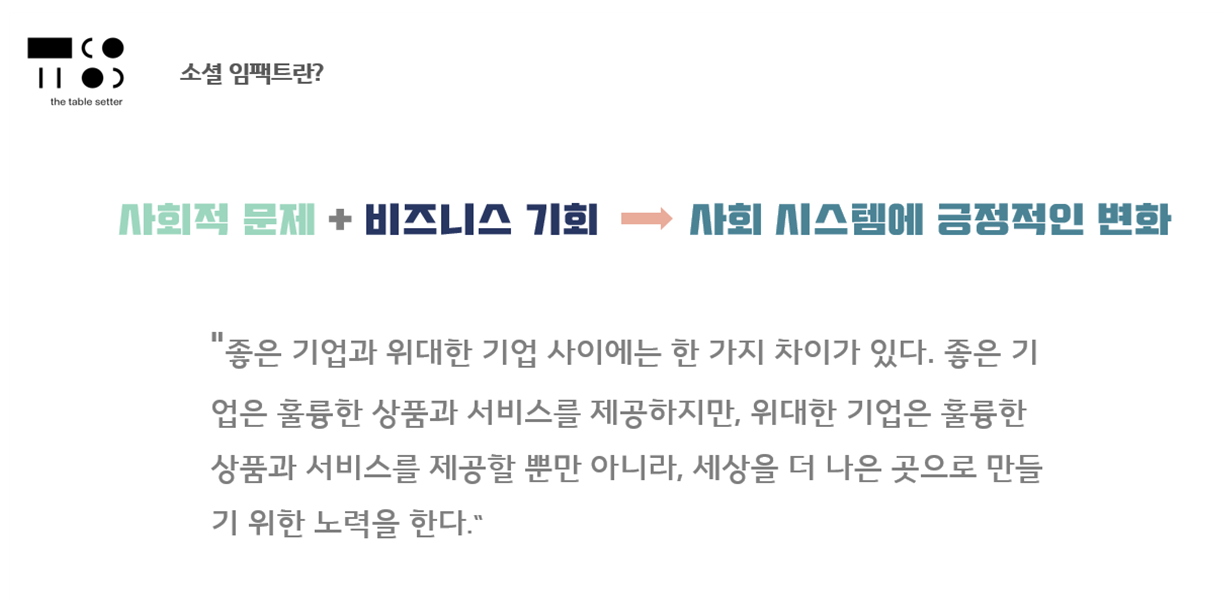 그리고 소셜 임팩트를 추구하는 회사를 소셜 벤처라고 합니다.