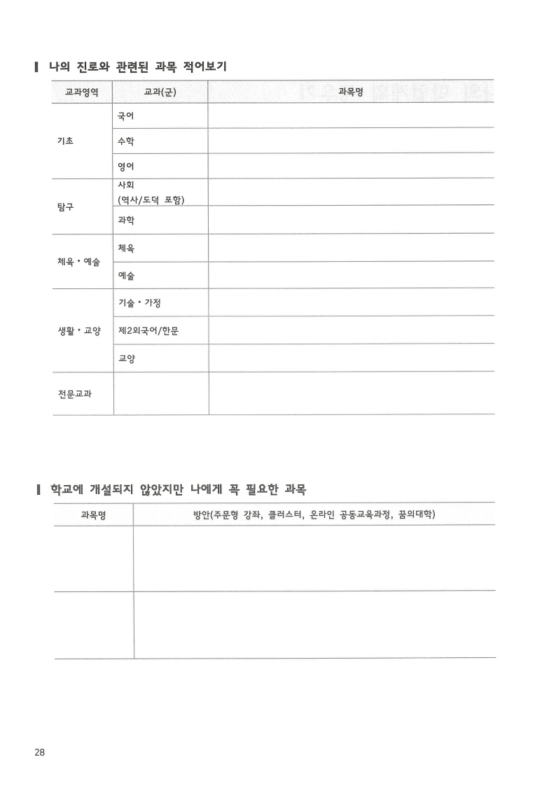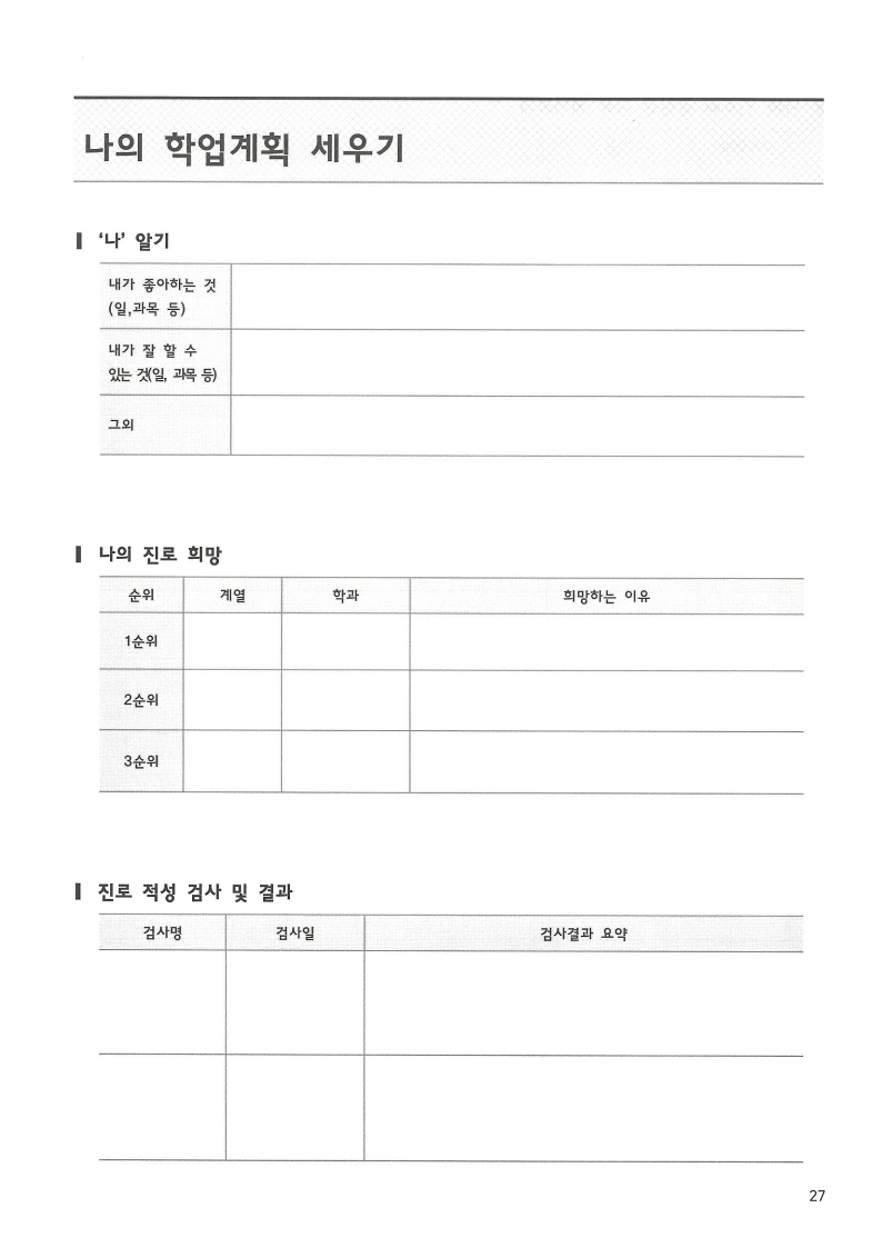 학교별로 각 특색에 맞는 진로 계획서 제공이 작성 지도 및 상담은 필수입니다.