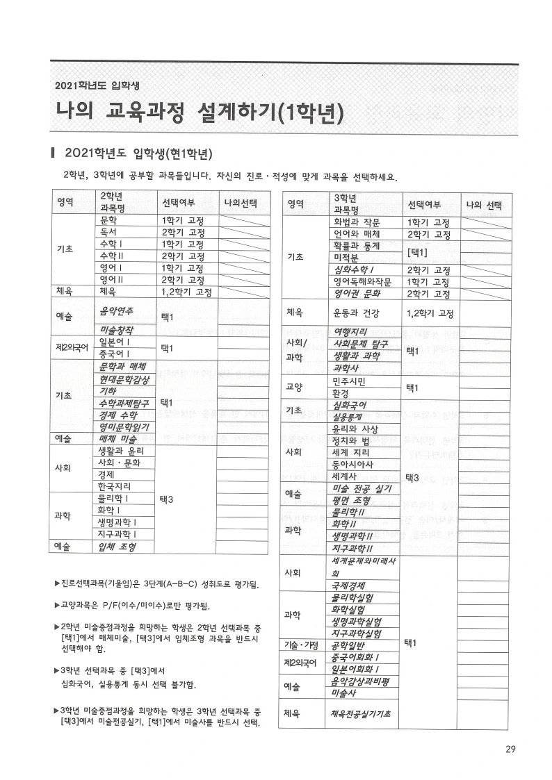 그래도 생활교양 교과군에서 정보처리와 관리, 철학을 필수과목으로 지정하는 학교는 많지 않은데 학교의 교육철학을 엿볼 수 있는 필수 과목입니다.