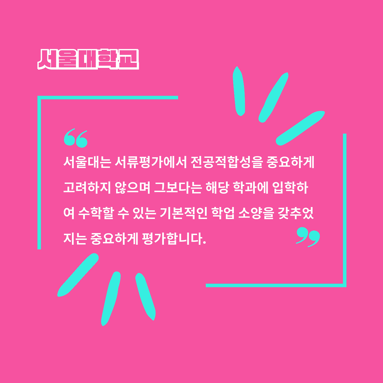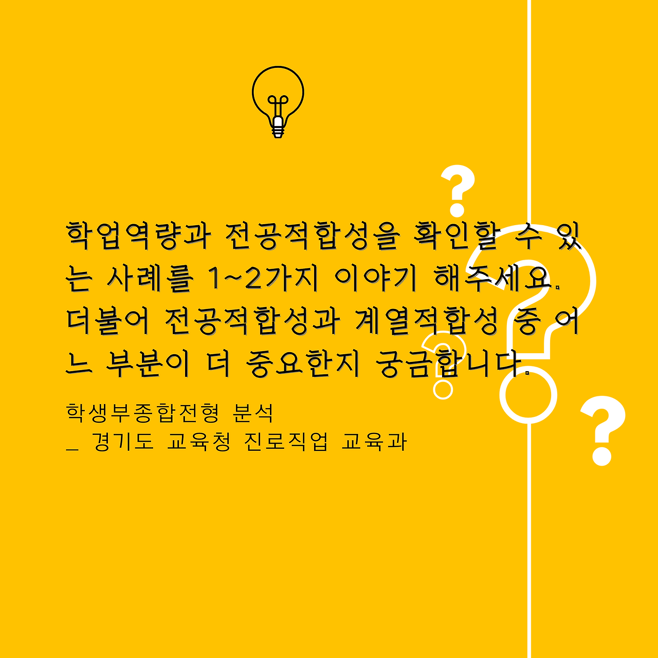 그리고 주요 대학은 공식적으로 '전공적합성'에 대해 평가하지 않고 있거나, 혹은 최소화 하고 있다고 이야기 하고 있습니다.