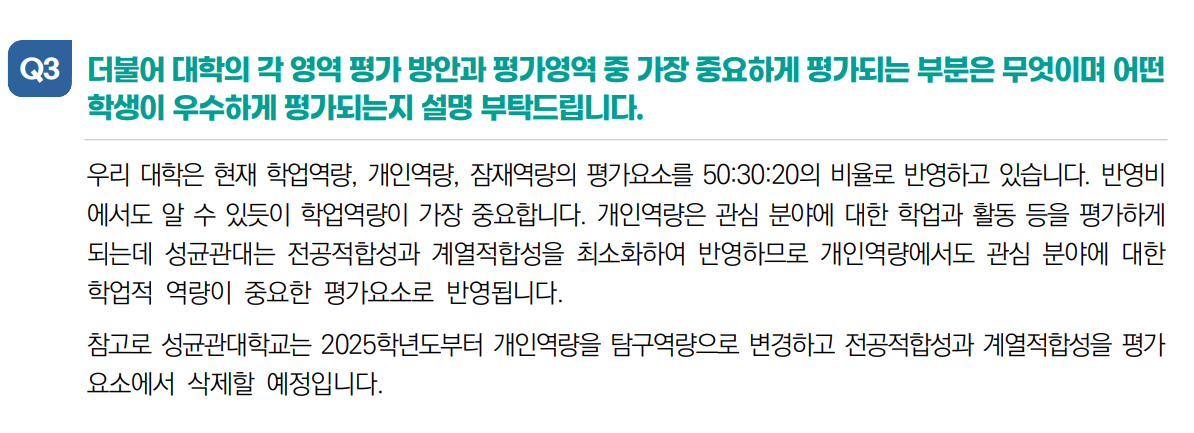 성균관대학교는 명확하게 '2025 대입부터 전공적합성과 계열적합성을 평가요소에서 삭제' 할 것이라고 밝혔습니다.