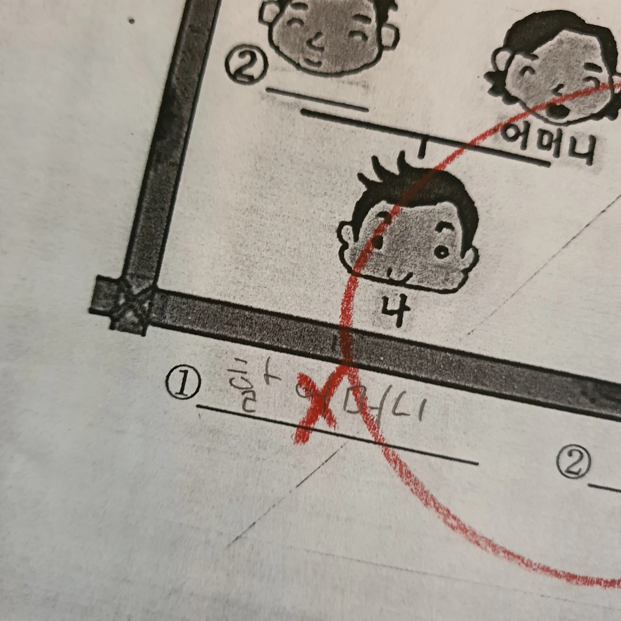 시험지를 보니 피식 웃음이 났다. 정성 들여 눌러쓴 글씨체도 귀엽고, 문제를 틀린 건 더 귀여워서. 자세히 보니 빈칸에 '할머니'라고 쓰면 되는 문제였다. 하지만 그는 거기에 '할어머니'라고 적었고, 선생님은 빨간 엑스를 그어놓았다. 그는 말을 이어갔다.