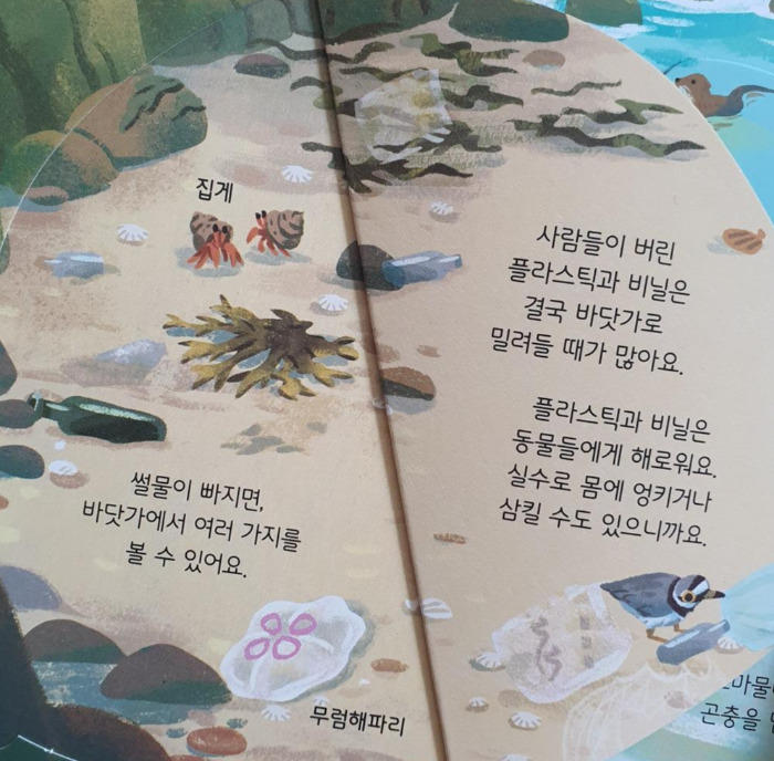 해양 쓰레기를 언급하는 어린이 책(『요리조리 열어 보는 바다 (플랩북) 』, 어스본 코리아)