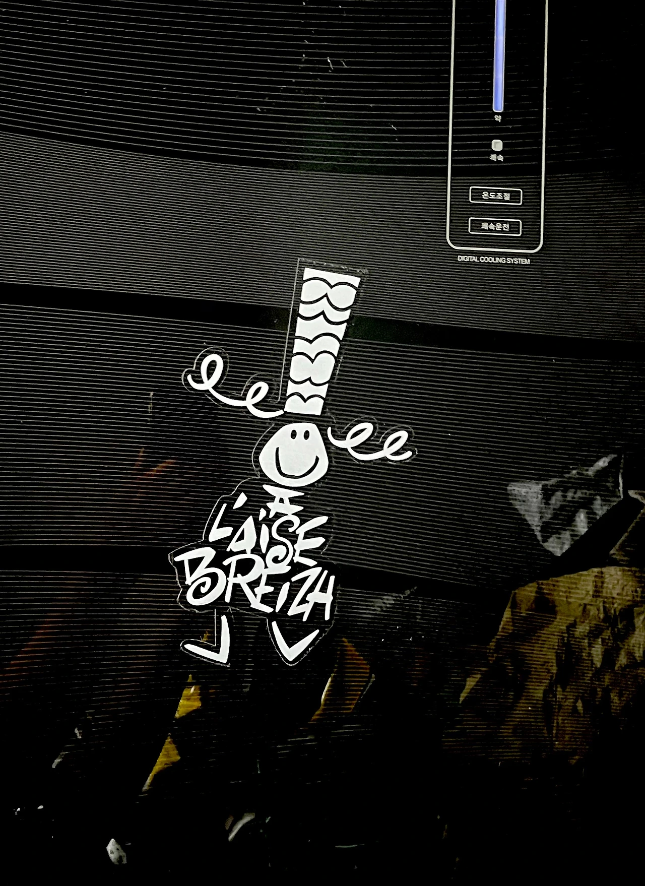 브르타뉴는 한 때 프랑스로부터의 독립을 주장하기도 했을 만큼 지역 정체성이 뚜렷하다. 지금은 그 색이 많이 바랬지만, 예전에는 브르타뉴 고유의 언어, 문화, 풍습이 따로 존재했다. 브르타뉴 기(flag)는 아직도 해당 지역에서 쉽게 발견된다. 프랑스 전국 어느 도로에서나 지나가는 차를 자세히 들여다보다 보면 브르타뉴를 상징하는 스티커를 부착한 차를 심심찮게 볼 수 있다. 그만큼 브르타뉴 출신들은 출신 지역에 대한 애착과 소속감이 남다르다. 남편은 따지고 보면 브르타뉴 출신도 아니면서 부모님을 따라 브르타뉴에 강한 애착을 느낀다. 웃긴 건 그게 나한테도 조금 옮았다는 거다. 누가 브르타뉴 출신이라고 하면 괜스레 반갑고, 디저트로 즐겨 먹는 크레페(crêpe)의 본고장이 브르타뉴라는 사실이 남몰래 자랑스럽다. 심지어 차에 붙인다는 브르타뉴 스티커를 나는 우리 집 냉장고에 붙여 놓기까지 했다.