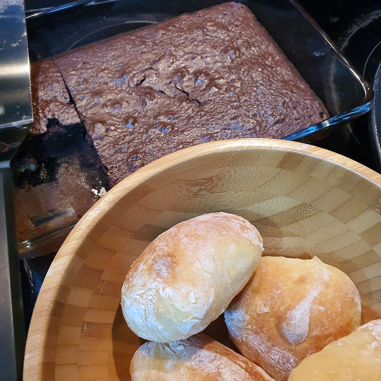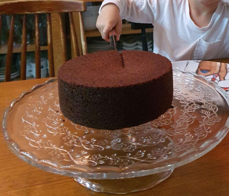 지인에게 받은 레시피를 따라 만든 두 번째 케이크. 꾸덕한 표면을 칼로 잘라보니 안쪽에서 초콜릿 버터가 흘러내린다. 맛이 없을 수가 없는 비주얼. 또다시 성공이다. 재료를 몽땅 섞어 오븐에 넣는 것이 다인데, 대체 왜 이렇게까지 맛있는 건지 의문. 이쯤 되니 새로운 재능의 발견인가 싶기도 하고.