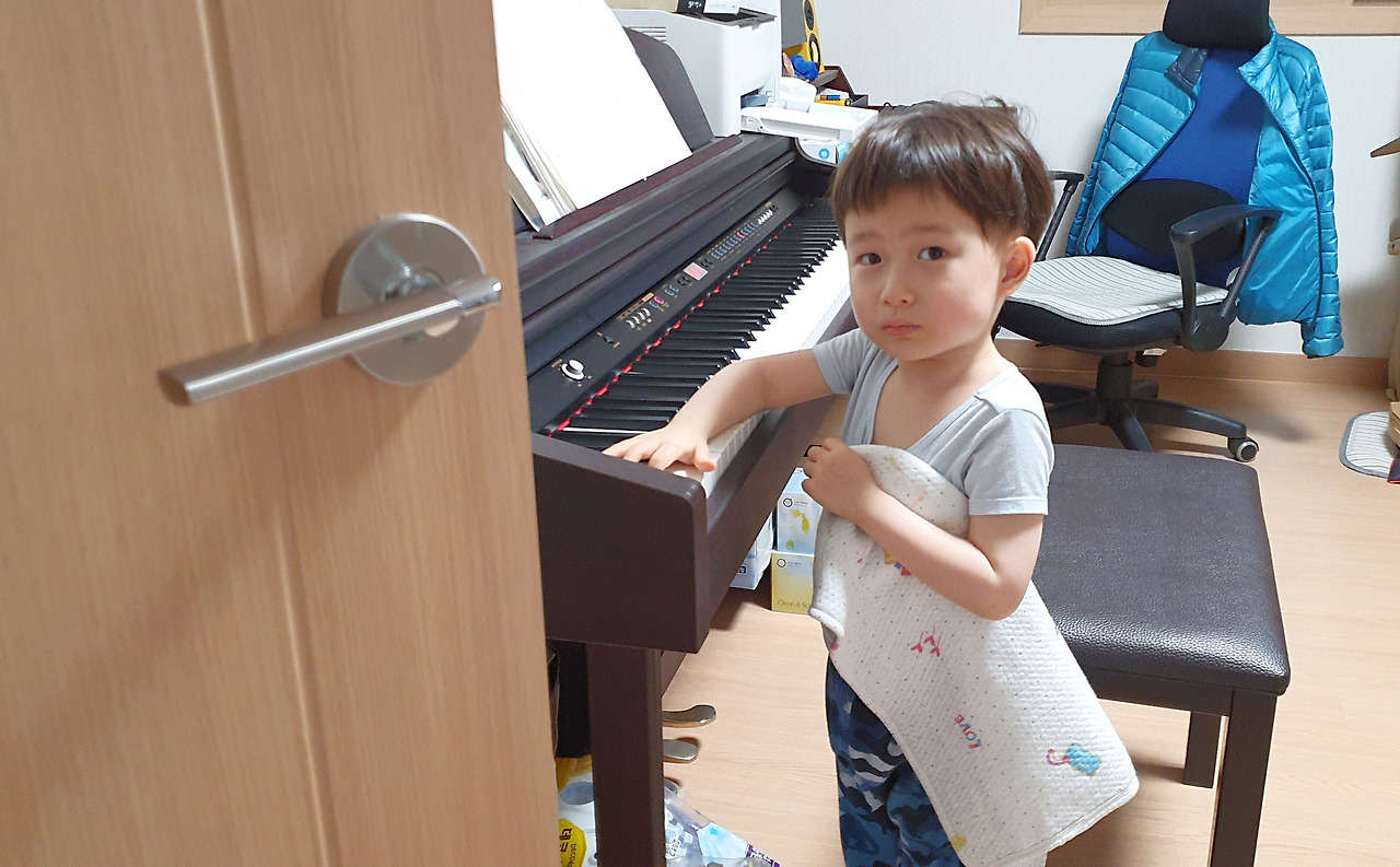 손대지 않던 피아노 뚜껑을 열어 띵까띵까 놀기 시작하더니