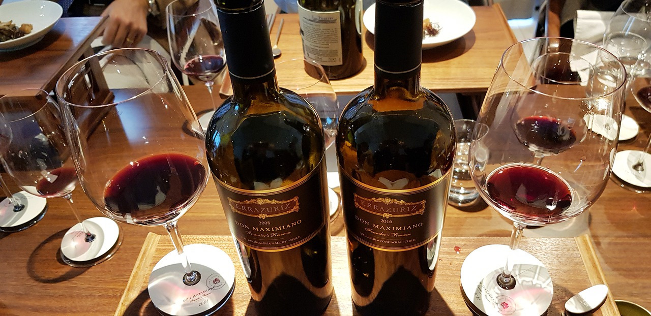 이어 에라주리즈의 아이콘 와인 중 하나인 돈 막시미아노의 세컨드 와인 ‘빌라 막시미아노 2016’가 등장합니다. 빌라 돈 막시미아노는 까베르네 쇼비뇽 40%, 쁘띠 베르도 25%, 말벡 20%, 까베르네 프랑 15%로 빚은 와인입니다. 돈 막시미아노가 까베르네 쇼비뇽(84%)을 기반으로 쁘띠 베르도(5%), 까베르네 프랑(3%)의 블랜딩 된 것과 확실히 다른 배합입니다.
