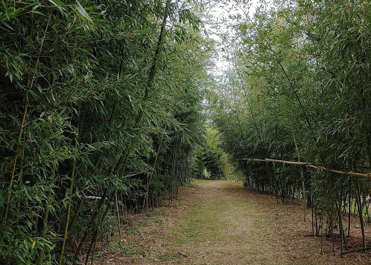 강창교를 지나면 산책로는 또 다른 모습으로 다가온다. 왼쪽 제방에 피어있는 갈대숲에는 이름 모를 새들이 재잘대고, 오른쪽 방향에 일자형으로 뻗어 있는 대나무 숲길은 마치 어둠처럼 짙은 녹색의 침묵이 도사리고 있는 듯한 풍경이다. 대나무 숲길 입구에는 ‘죽곡 댓잎 소리길’이라고 대나무로 만든 듯한 문과 붓글씨로 쓰인 간판이 설치되어 있었다. 팻말을 눈으로 보는데 소리길로 흐르던 바람 소리가 귀를 흔들며 지나간다. 소리 길에 들어서면 갈림길이 없는 외길이라 대숲 사이로 난 오솔길을 아무런 생각 없이 걷기만 해도 즐겁다. 키가 높은 대나무 숲은 산책로 양쪽에서 서로 맞물려 하늘을 덮고 있어 아직 낮 시간인데도 어둠이 드리울 정도로 그늘이 짙다. 바람이 불 때면 머리 위로 훌쩍 자라 있는 댓잎들이 흔들리며 내는 ‘사그락’ 소리가 발걸음에 맞춰내는 음악처럼 들리며, 짙은 어둠 속에 갇힌 듯 시간조차 잊히는 것만 같다. 대나무 숲길을 따라 한참을 가다 보면 순환도로가 끝나는 고수부지에서 우측으로 난 오르막길에 올라서니 디아크로 가는 길과 이어져 있다. 걸어서 디아크까지 간 일이 없어서인지 몰라도 새로운 길에서 만나는 풍경 하나하나가 다 행복한 기분을 안겨주는 것만 같다.
